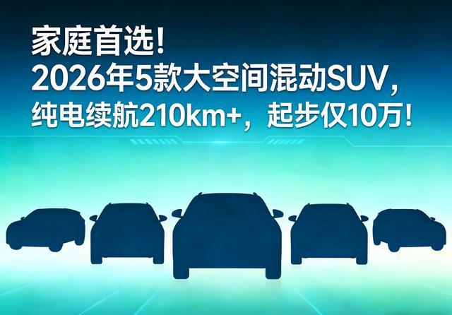 今天我就给大家盘盘2026年最值得关注的5款大空间混动SUV,款款纯电续航都超过210公里,起步价也就10万左右。咱们不光看参数,还得看实际家用到底香不香。